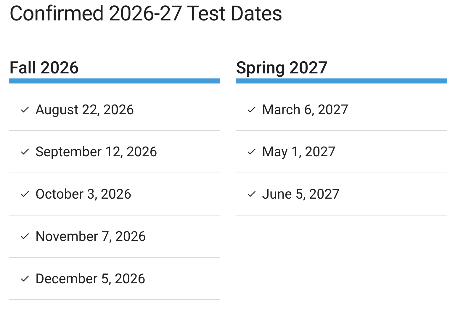 SAT TEST DATES